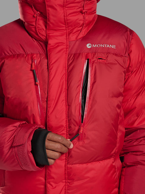 Windproof, durable and highly water-resistant, Pertex® Quantum Pro in the Apex 8000 utilises a combination of a 30D ripstop and 50D ripstop reinforcement fabric in high wear areas. The fabric features an ultra-thin water-resistant coating on the inside of the fabric and a durable water repellent finish (with no intentional use of PFAS) on the outside to provide reliable weather resistant protection in the harshest of conditions. The tightly woven yarn construction traps warm air inside the jacket and improves the efficiency of the down insulation.
