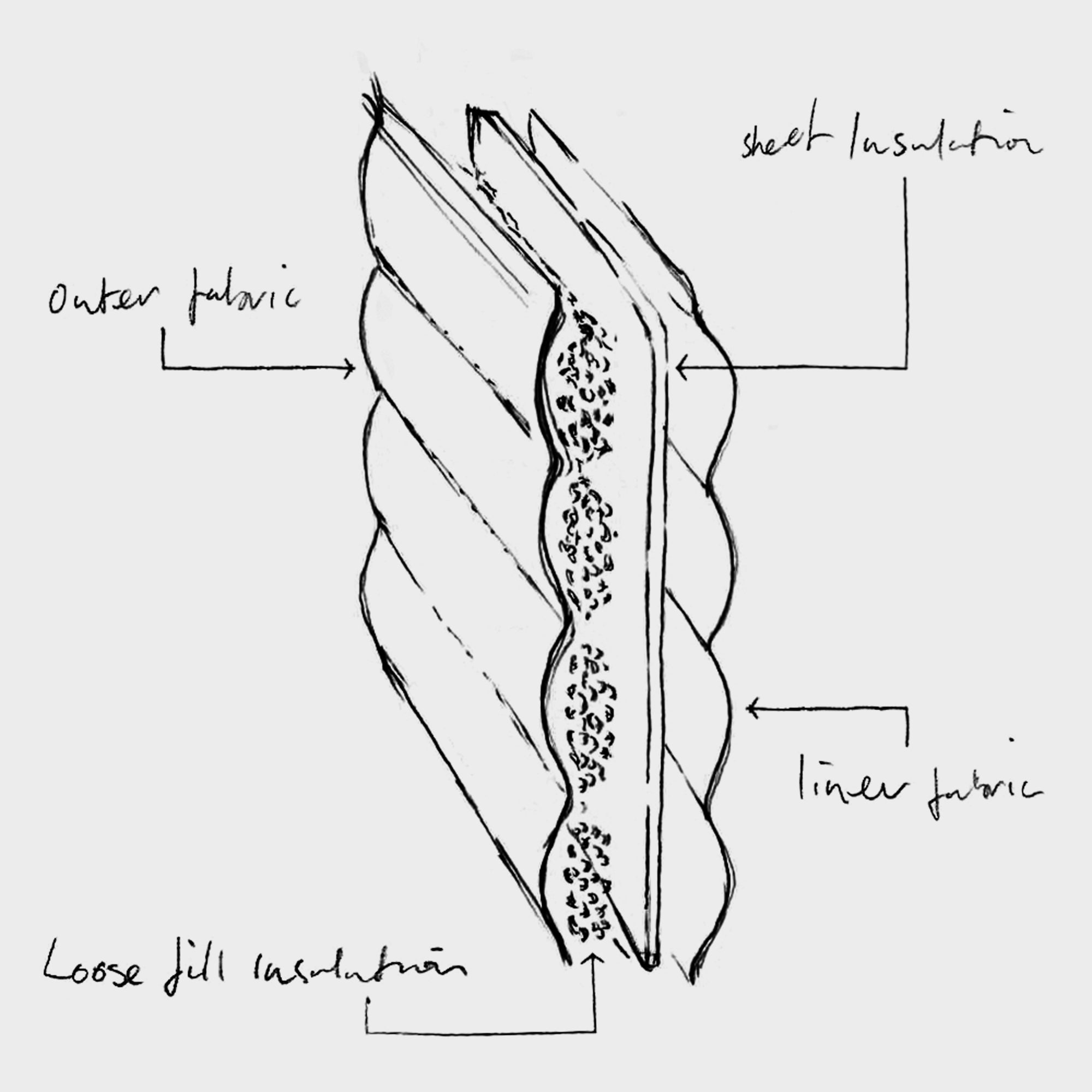 Outer: 100% Polyester (recycled); Insulation - core body, hood and sleeves: 100% Polyester (recycled); Insulation - core body, hood, sleeves and shoulders: 100% Polyester (recycled); Lining: 100% Polyester (recycled)