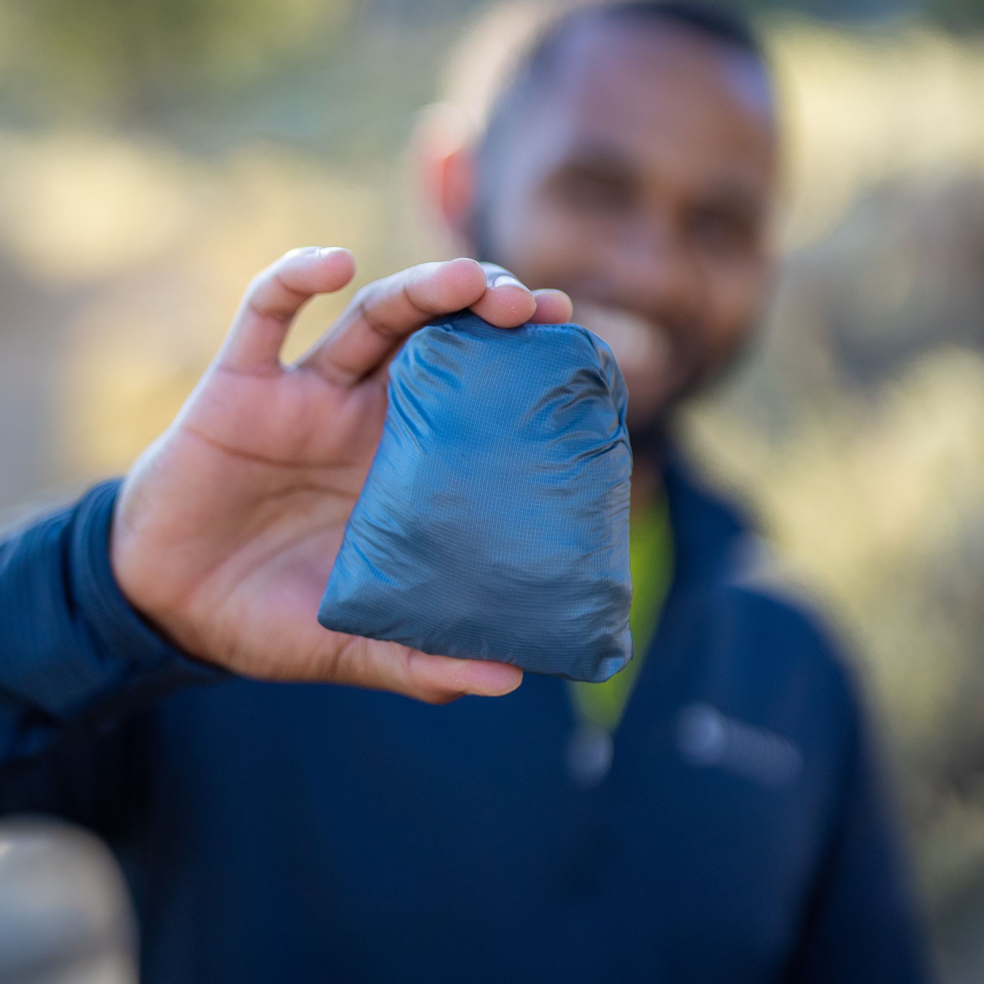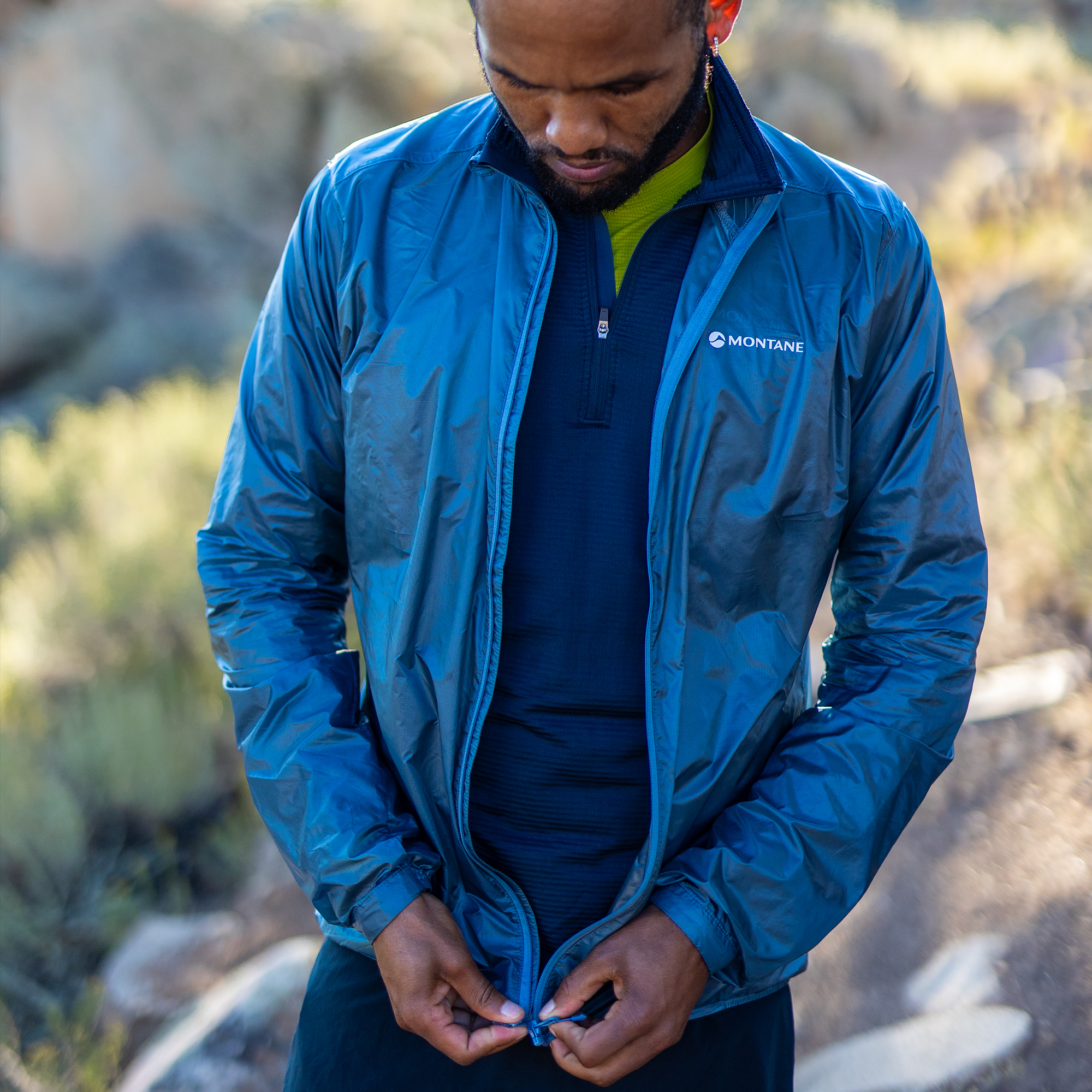 The Montane Featherlite Nano Windproof Jacket does away with the added bulk of a separate stuff sack by packing down into its own collar, creating a pocket-sized package that can be carried anywhere without a second thought.