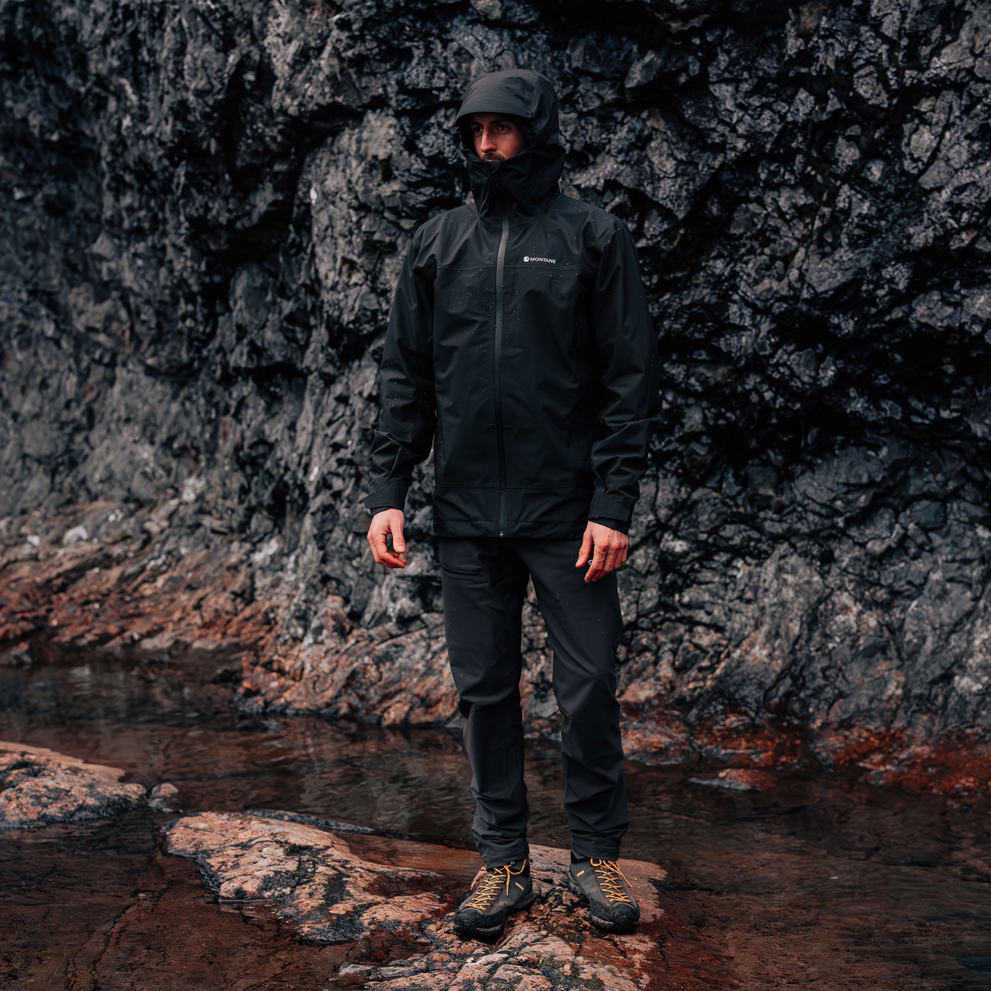 The 50-denier PERTEX SHIELD REVOLVE® outer of the Montane Men’s Solution Jacket has been designed to be 100% recycled with a PFC-free DWR. The plain weave fabric has been solution dyed, which means it uses 50% less water to manufacture, and less energy, for a timeless waterproof jacket.