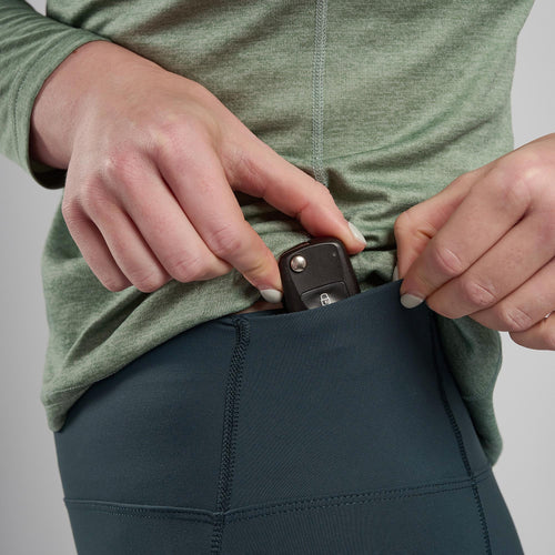 Discreet stretch thigh pocket, perfect for a phone, secured in with top elastic