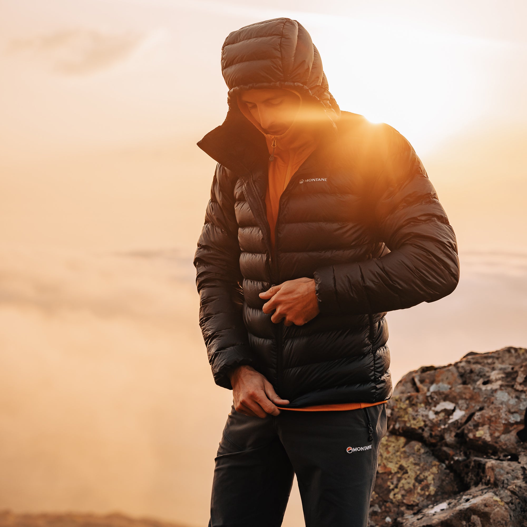 First things first, down is a natural fiber found on the underbelly of waterfowl birds, most commonly ducks and geese (notably not chickens, or turkeys). It is made up of clusters, which provide insulation by trapping air, providing an optimal warmth-to-weight ratio that keeps the birds warm and protected. Often, brands offering down products will use a small blend of feather, known as the down-to-feather-ratio. All Montane virgin down is 90/10 - that is, 90% down and 10% feather. For example, see our Anti-Freeze Lite Hooded Down Jacket