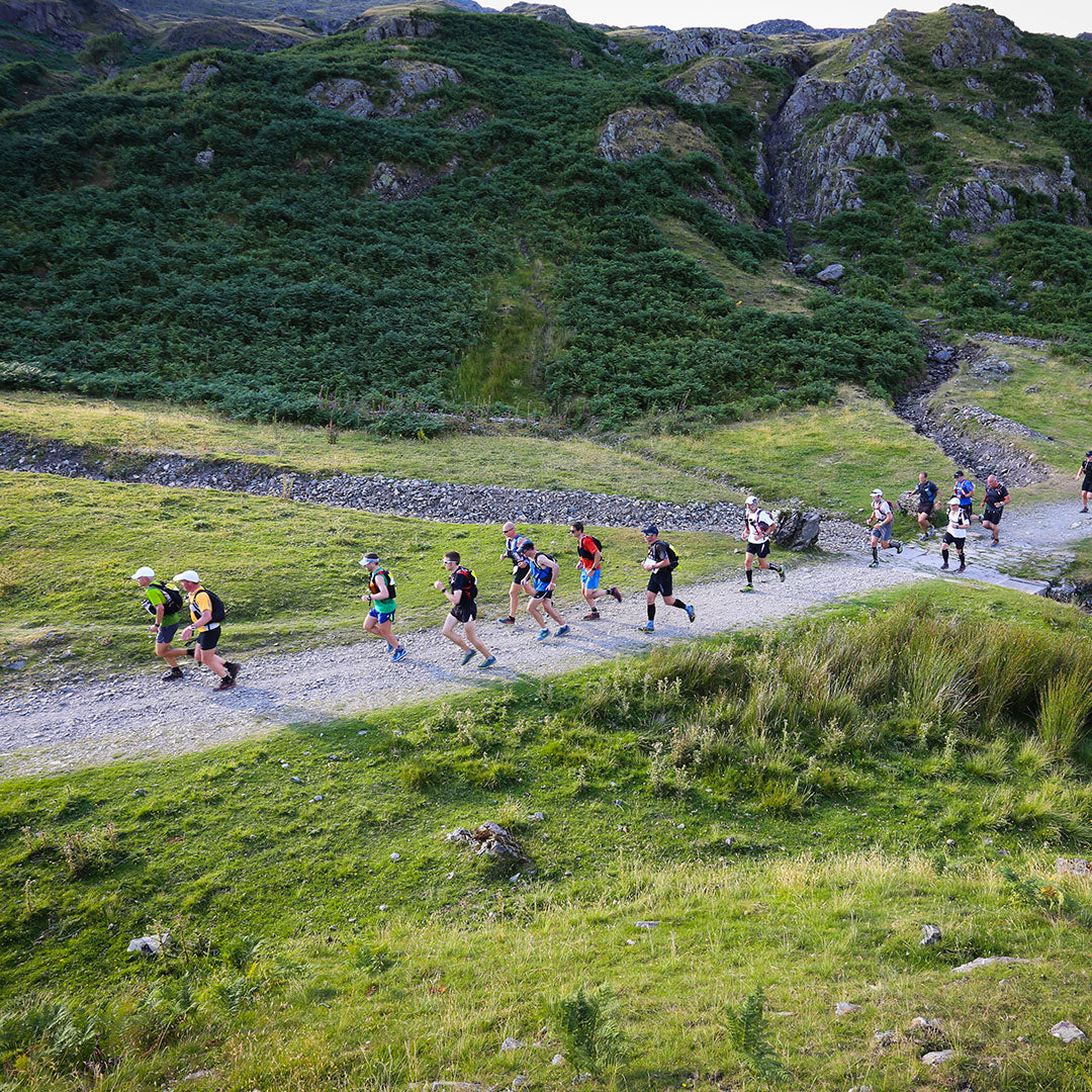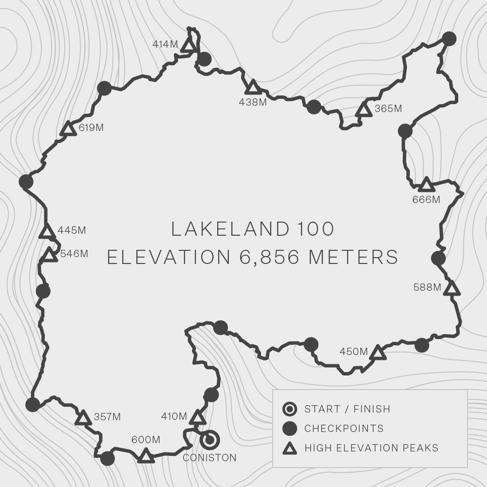 The Lakeland 100 ‘Ultra Tour of the Lake District’ is the most spectacular long-distance trail race ever held within the UK. The circular route encompasses the entirety of the Lakeland fells, includes approximately 6300 meters of ascent, and consists almost entirely of public bridleways and footpaths. The route starts in Coniston and heads south before completing a clockwise loop that takes in the Dunnerdale fells, Eskdale, Wasdale, and Buttermere before arriving in Keswick. From here, the route heads to Matterdale and continues over to Haweswater before returning via Kentmere, Ambleside, and Elterwater to the finish at Coniston