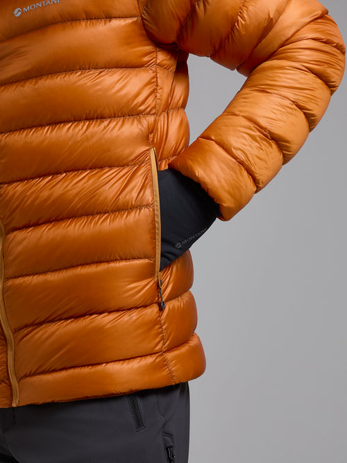 ALLIED’s HyperDRY™ Water Resistant Down allows the Alpine 850 Lite Down Jacket to provide extreme performance in unpredictable conditions. Regular untreated down can wet-out and struggle to retain warmth when wet, HyperDRY™ down is incredibly hydrophobic, helping prevent the down structure from collapsing due to absorbing water. This allows the down to retain its loft and warmth for longer when damp, while also allowing it to dry much quicker.