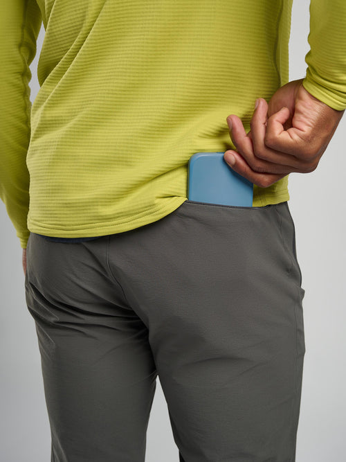 A 4-way stretch plain weave ensures these men’s trousers are incredibly stretchy, providing enhanced freedom of movement. This fabric is also highly abrasion-resistant, which makes them robust and durable, ideal for activities such as climbing where you are in close contact with harsh terrain.