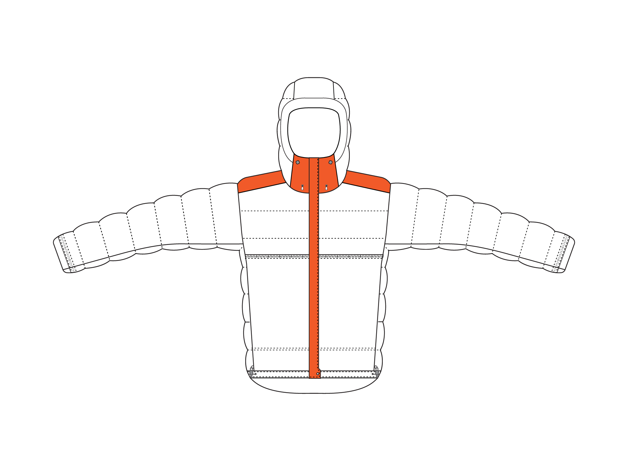 2-way YKK Vislon Natulon recycled center front zip. Insulated placket prevents heat loss