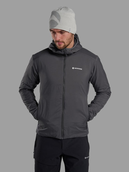 Midnight Grey Montane Men's Sirocco Hooded Insulated Jacket Model Front