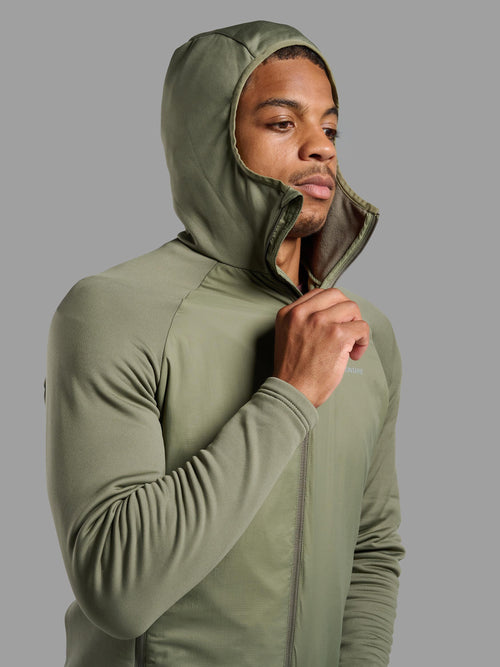 Hybrid in design, the Dynamic Insulation provides thermal performance throughout the main body, with THERMO Stretch brush back fleece sleeves for freedom of movement and excellent moisture management.