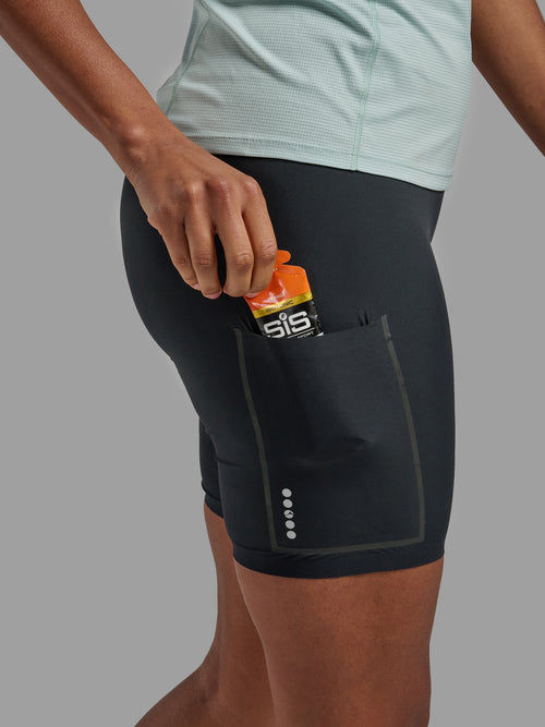The minimal, low-profile waistband, ultrasonic welded seams and silicone grippers ensure a secure fit without chaffing whether worn alone or layered. Complete with an external thigh pocket, they offer convenient storage without sacrificing comfort.
