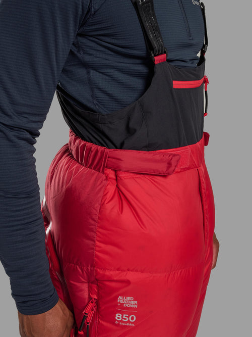 The Apex 8000 Down Salopettes are filled with ExpeDRY™ Goose Down, which has non-toxic gold particles bonded to it for fast-drying performance and industry-leading warmth. The chemical-free technology works because gold particles vibrate water molecules, just like heat does, to speed up evaporation to a rate faster than the water absorption rate of down, while managing moisture from the body.
